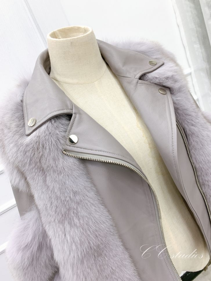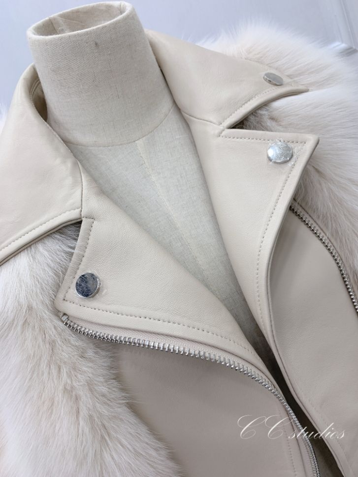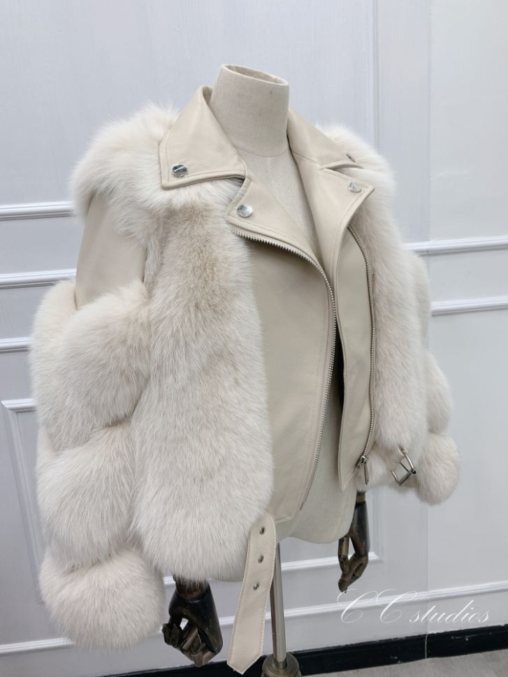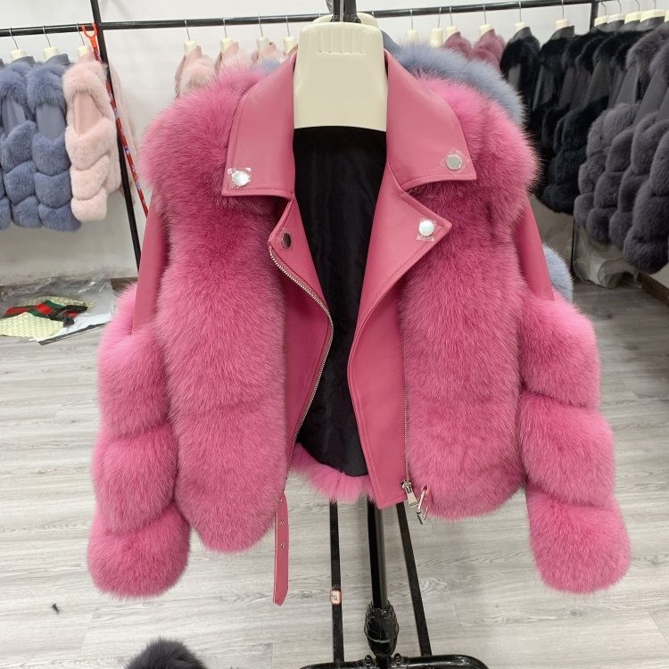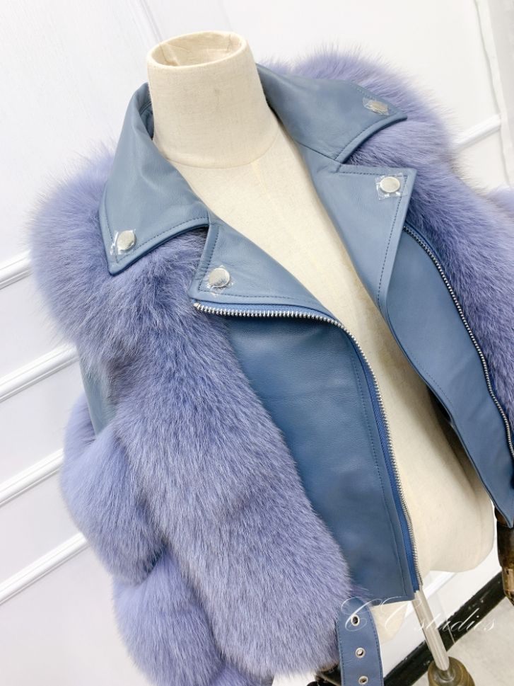 Дамско късо кожено яке естествен косъм лисица и естествена кожа в 9 цвята