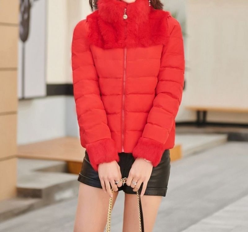 Късо елегантно модно дамско яке с гъши пух и естествен косъм заек