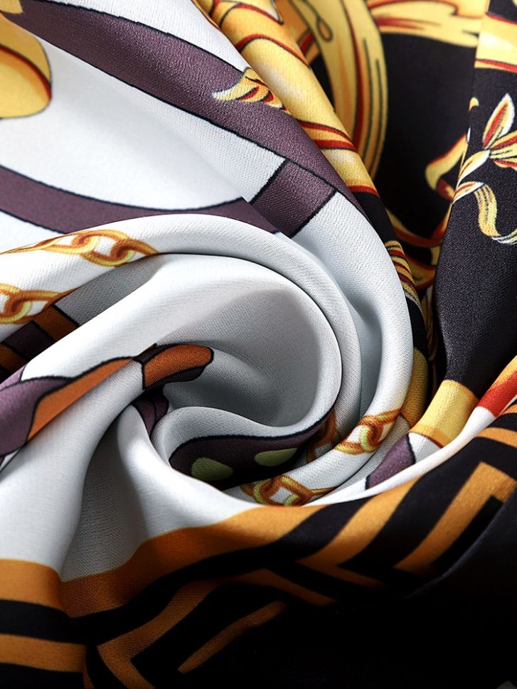 Модна рокля от копринен сатен бароков стил с принт
