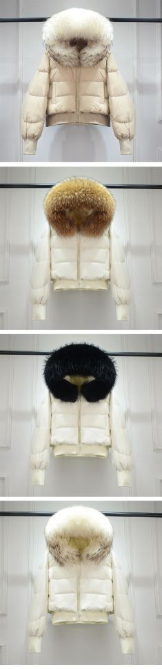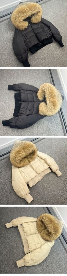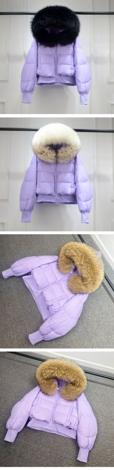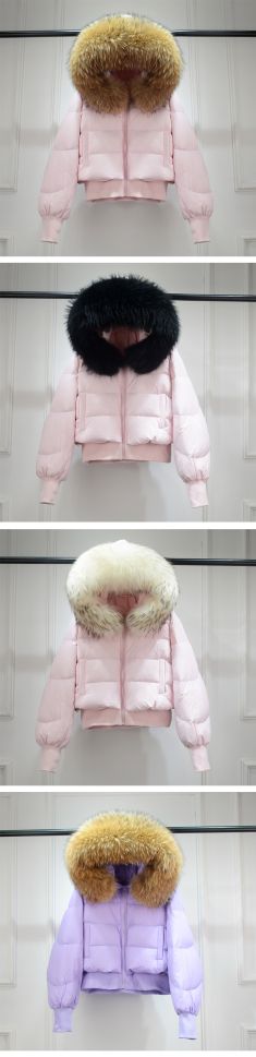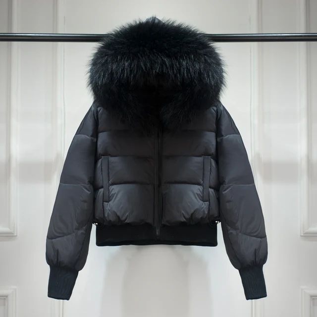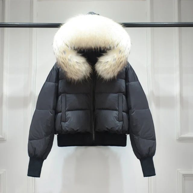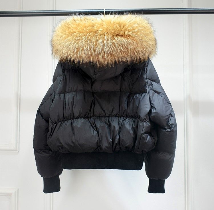 Дамско зимно яке с качулка, с гъши пух с яка естествен косъм
