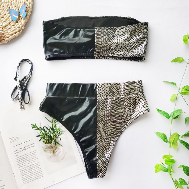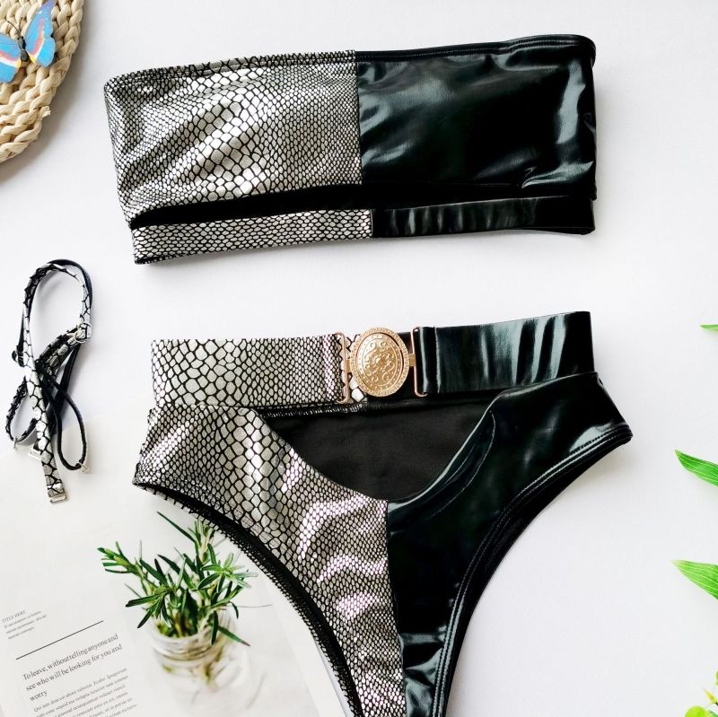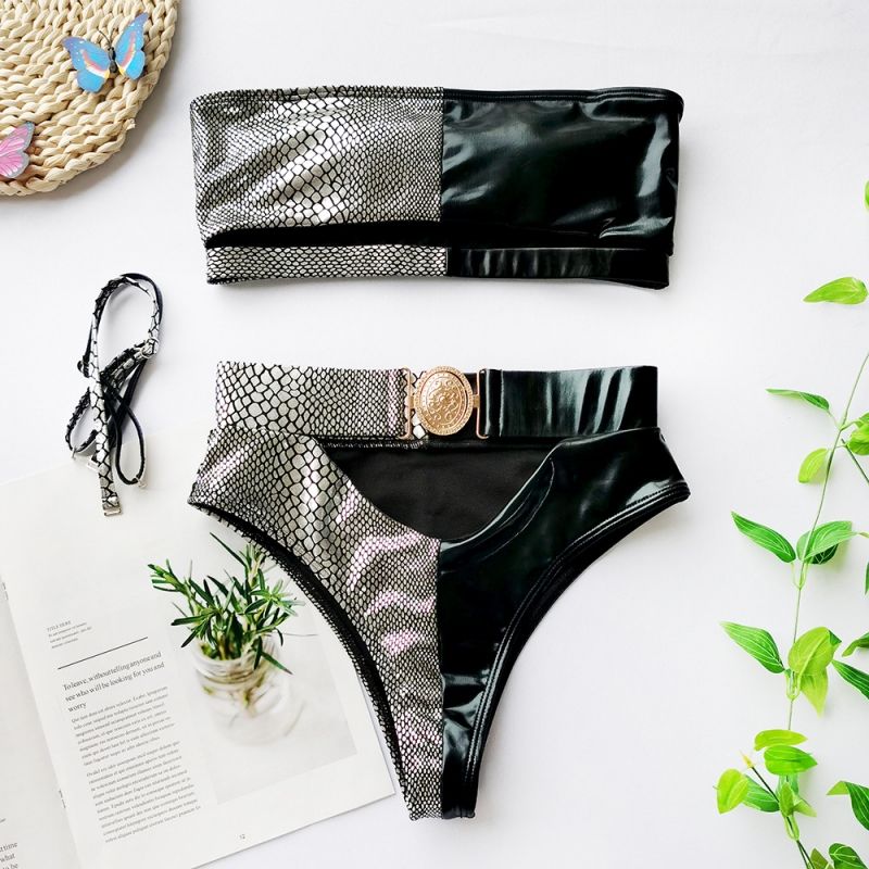 Луксозен секси бански с висока талия с колан с катарама