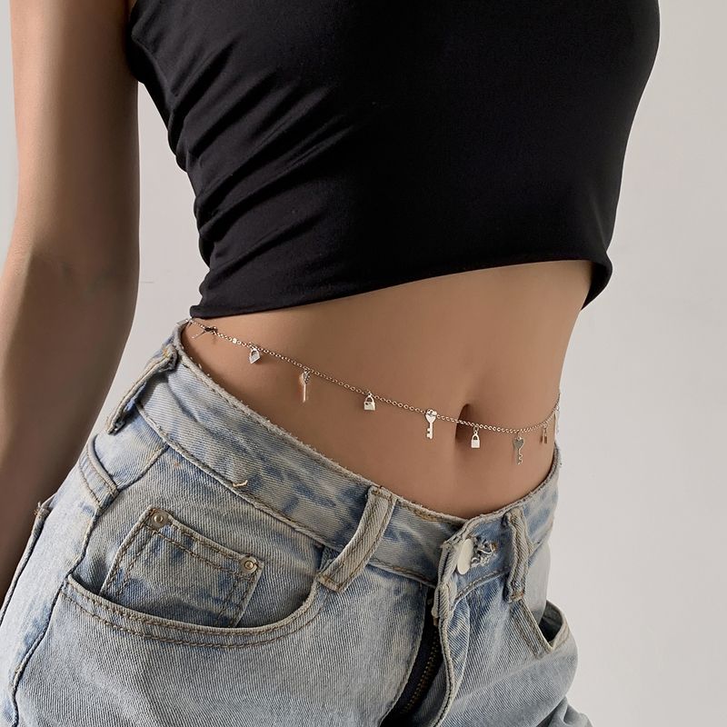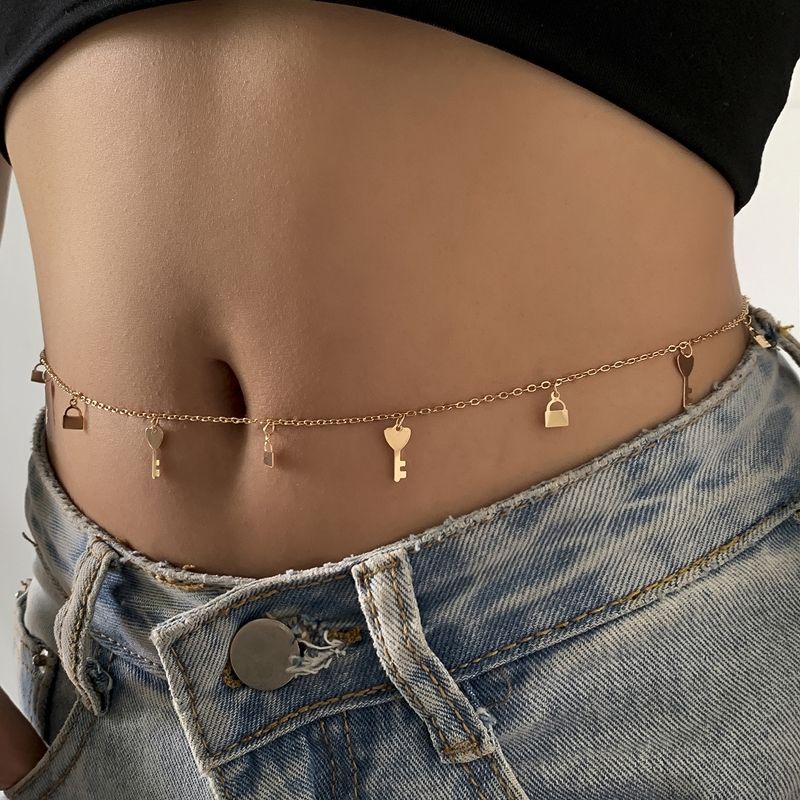 Тънка верижка украшение за талия с ключе и катинар