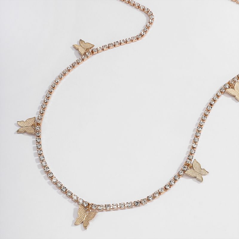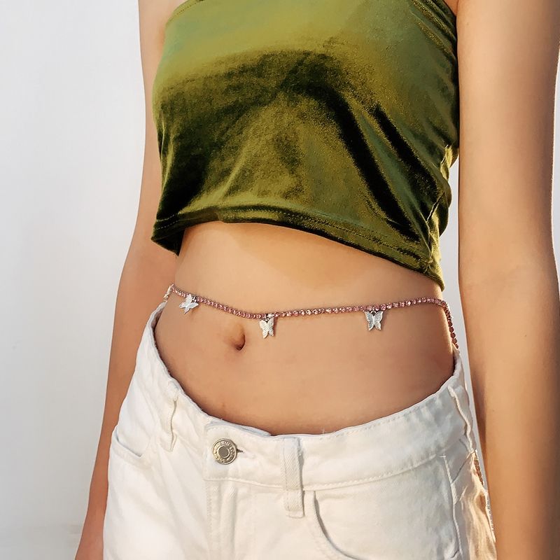 Тънка верижка украшение за талия с камъчета и пеперуди