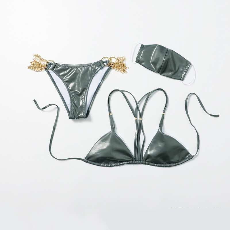 Секси изчистен бански с метални вериги