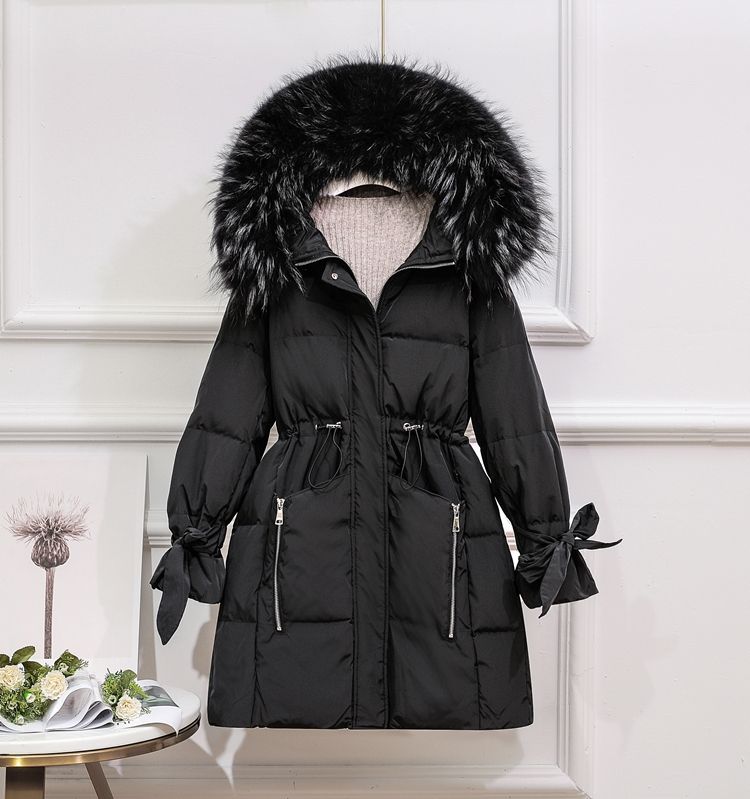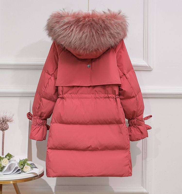 Дамско яке с гъши пух с голяма яка естествен косъм лисица