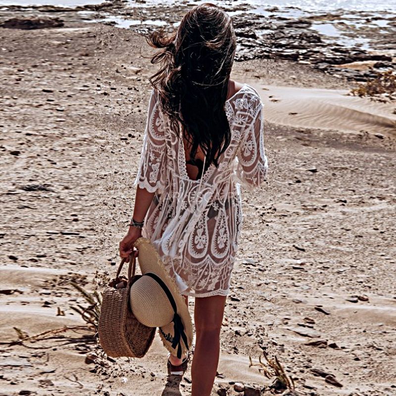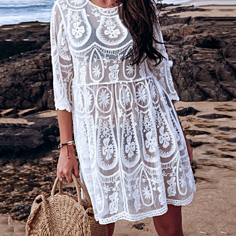 Къса свободна плажна рокля от дантела, НАЛИЧНА