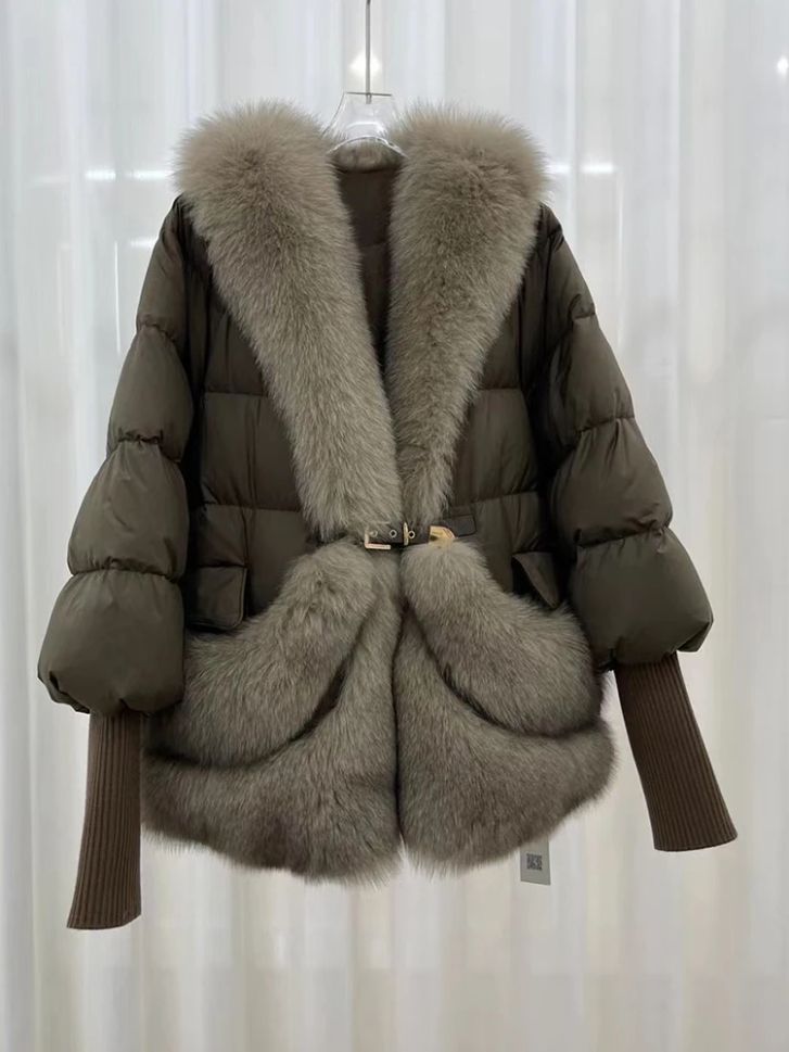Дамско зимно яке с гъши пух и естествен косъм лисица