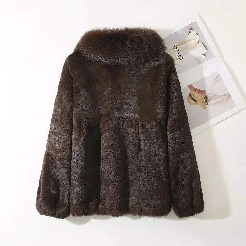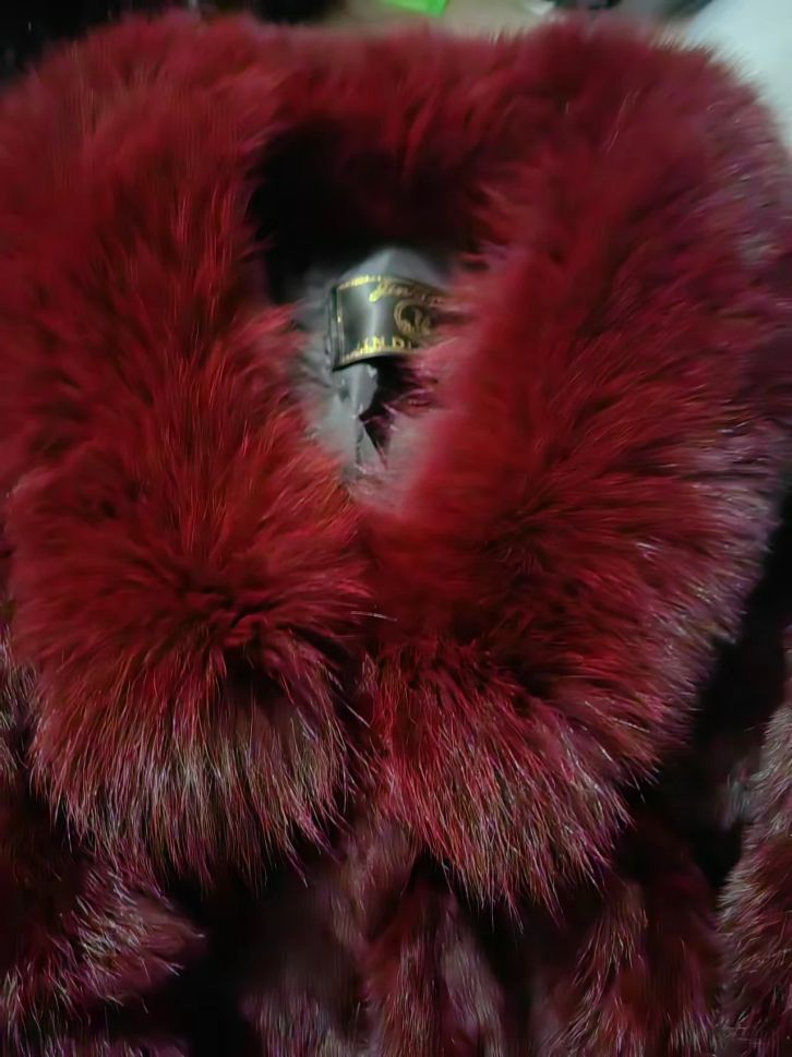 Зимно палто от естествен косъм заек с яка естествен косъм лисица