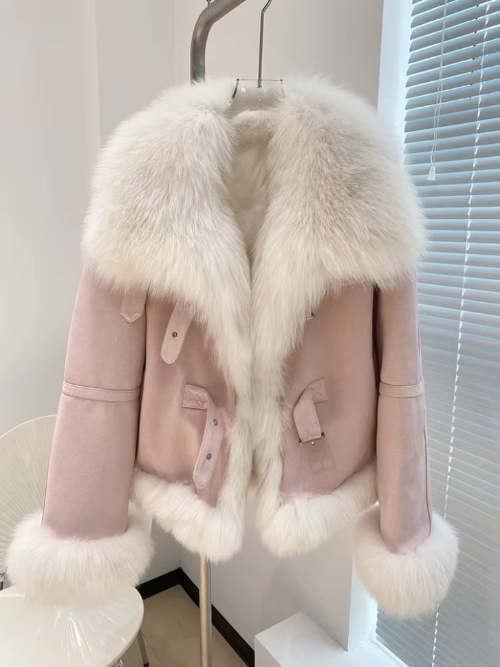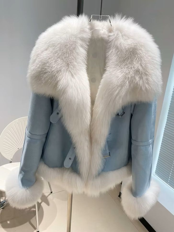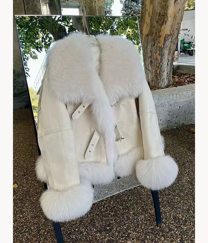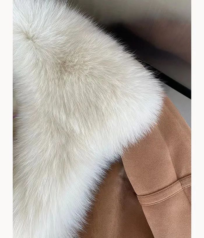 Зимно кожено палто с яка естествен косъм лисица