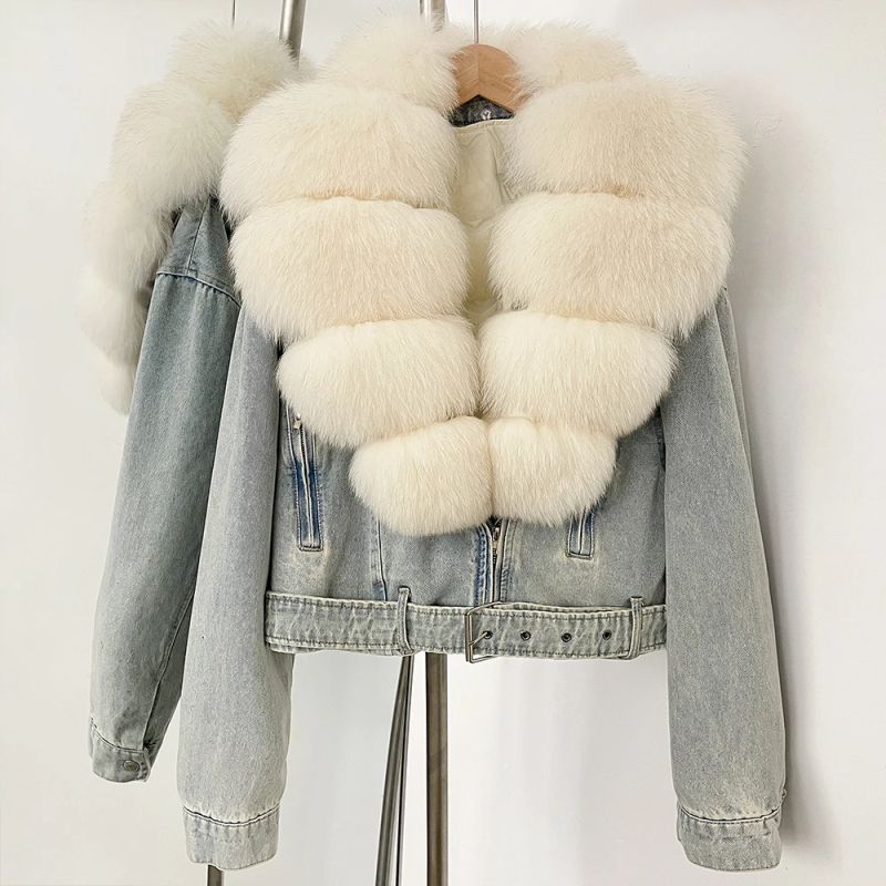 Дънково яке с яка от естествена кожа лисица