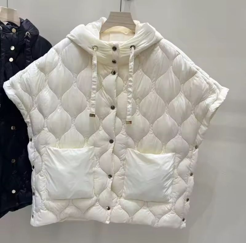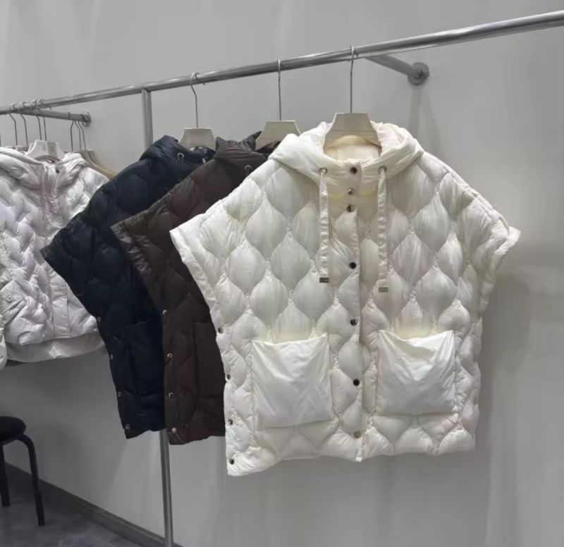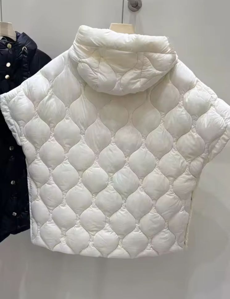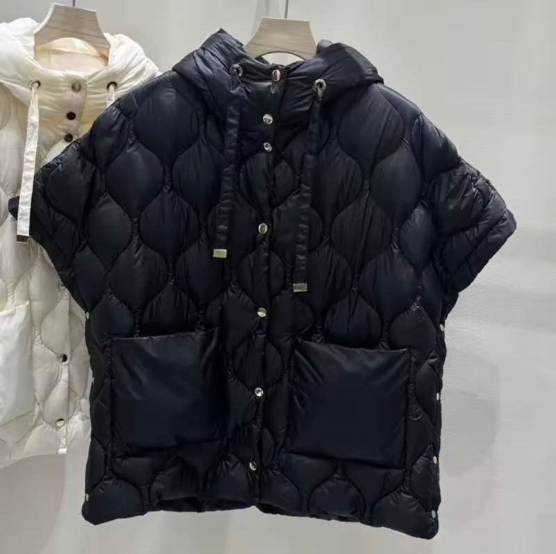 Зимна дамска жилетка с пълнеж от патешки пух с качулка